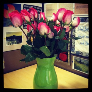 A lovely colleague of mine, who works in one of my project's offices in East Timor, sent me flowers as congrats/best wishes! So sweet (and amazing that from half way around the world, she simply logged on to a website and ordered me flowers that are now on my desk in Bethesda, MD).